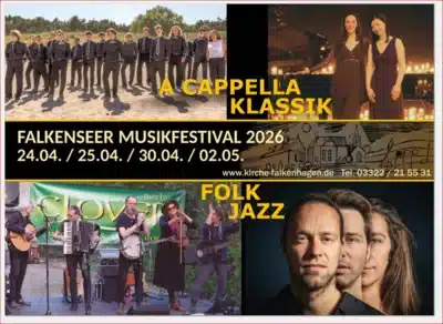 20.03.2026: Falkenseer MusikFestival bietet A Capella, Folk, Klaviemusik bei Kerzenschein und Jazzmusik